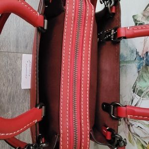 Coach Mickey Mouse Rouge handbag red, grained leather. New condition with no wear to note.