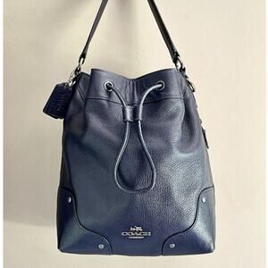 Coach Mickey Navy Blue Bucket Crossbody Leather Pebbled Shoulder Hobo Bag