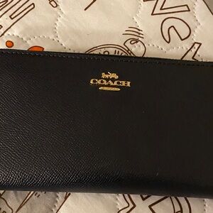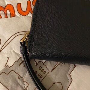 Elegant wristlet by Coach. Features gold logo and zipper.used twice