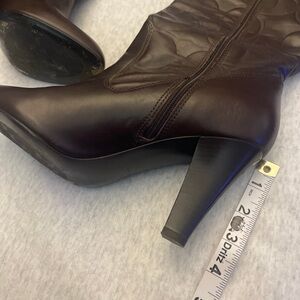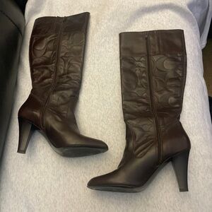 Stunning, chestnut brown Millie style Coach knee high heeled boots. Signature logo C embossed on calf area. Inside zipper, stacked heel. In excellent condition, see pictures. No box!! No scratches or cracking on leather