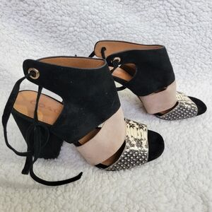 Coach Minetta Heeled Sandal With Snakeskin Style Q9138 Suede Black Tan Size 8