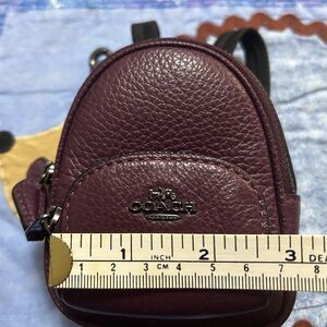 Adorable mini backpack in burgundy leather with gunmetal hardware. There is even a tiny coach hang tag on this little gem. In new without tags condition. I removed it from the packaging and placed it in a drawer. From a smoke free pet friendly home. Dimensions as shown in photos.