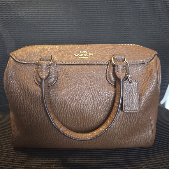 EUC Coach Mini Bennett Satchel in crossgrain tan leather. The bag itself is in excellent condition. The removable crossbody strap has some chipping/wear on the attaching hardware, but it's not noticeable unless you're inspecting it. I've done my best to show it in the photos.