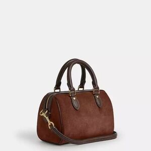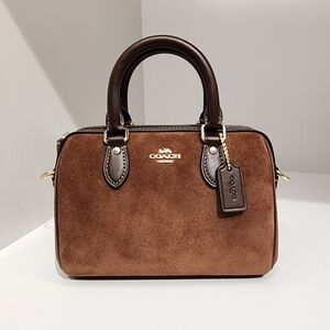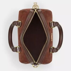 Stylish brown leather handbag with elegant gold accents. Perfect for any occasion.