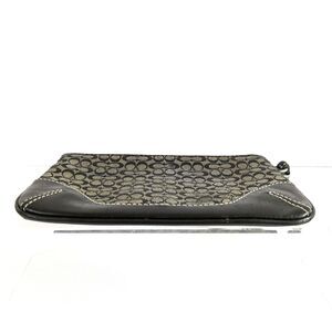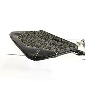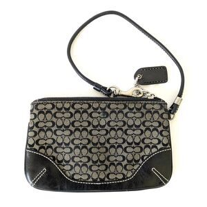 Coach Mini C Signature Black and Gray Jacquard Canvas Black Leather Wristlet.