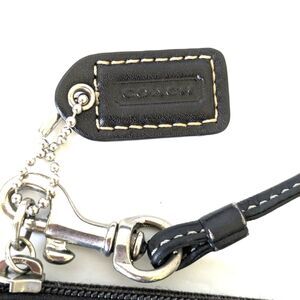 Coach Mini C Signature Black and Gray Jacquard Canvas Black Leather Wristlet