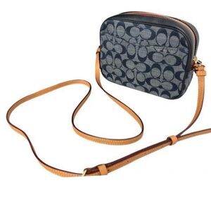 📸Coach Mini Camera Bag Signature Chambray Logo Blue Crossbody in Denim🦋