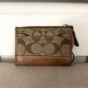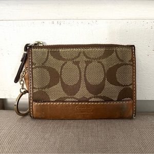 Coach Mini Card Case Wallet | Brown Logo & Tan Leather | Used Condition