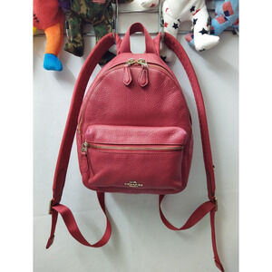 Coach Mini Charlie Red Pebbled Leather Front Pocket Zipper Closure Backpack
