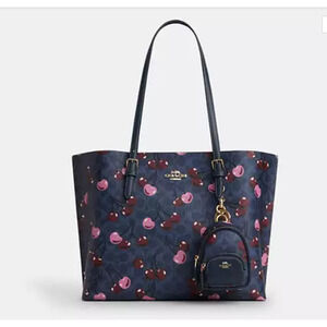 Coach Mini Court Backpack Bag Charm In Signature Canvas Cherry Print CZ086 NWT