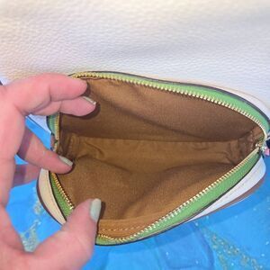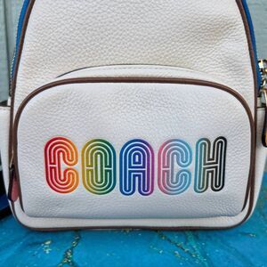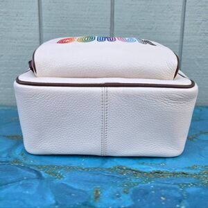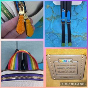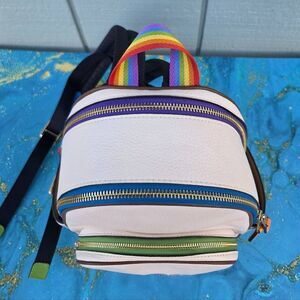 @lottabull74 hello :) isn't it super cute?!! I love the rainbow accents on it, especially how they did the zipper pulls! its preowned with little wear, if you check out the photos there's one where it shows the bottom corners of the small front zip pocket where there's some barely there wear