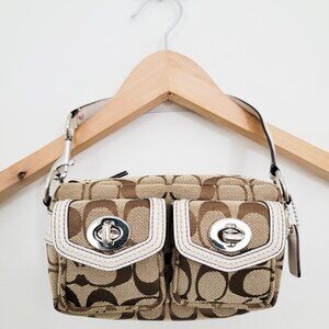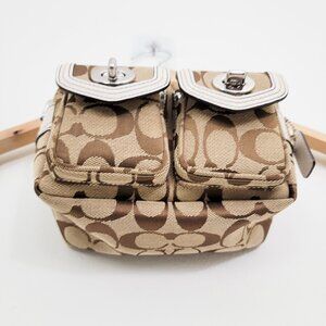 Coach Mini Double Turnlock Pocket Signature Monogram Bag