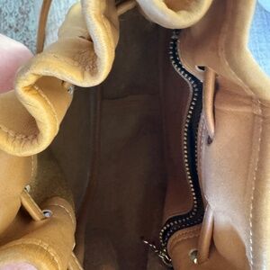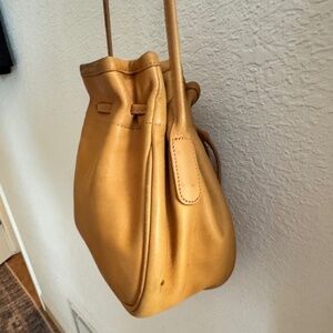 The buttery soft leather has developed that gorgeous patina that only time can give you. The gathered drawstring closure cinches up like a perfect little pouch, keeping your essentials safe while looking impossibly chic doing it.