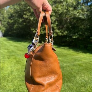 For sale: a stunning Coach Mini Ellis Tote in classic tan leather! This stylish bag is perfect for everyday use or a chic night out. It features: