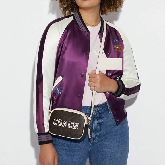 Coach Mini Jamie Camera Bag In Signature Canvas With Varsity Motif
