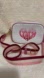 Excellent Coach Mini Jamie Camera Bag With Stripe Heart Motif. Clean pebble leather and clean interior with card slots. Hangtag included. Outside open pocket. Detachable guitar strap with 22 3/4" drop.
