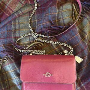 Brand new never used Coach bag in a beautiful cranberry color with silver metal hardware and convertible chain handle. Original price $328.