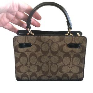 Coach Mini Lane Top Handle In Blocked Signature Canvas Pockets Leather Designer