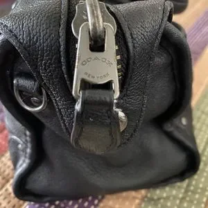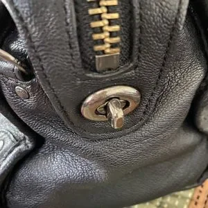 Black Coach Rhyder in size small. This bag is in good condition it’s just too small for me. Gunmetal hardware. No crossbody strap. Super cute bag. Some tarnishing on hardware.Handles are starting to crack.