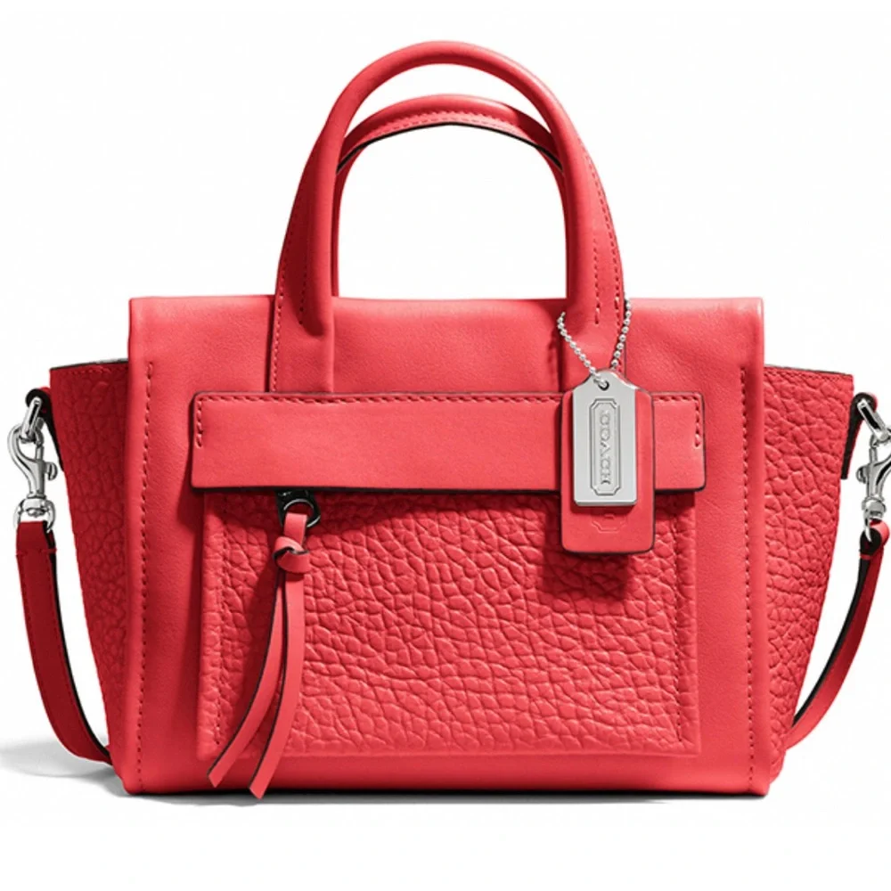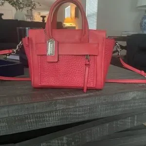 This Coach Mini Riley in a striking red hue offers a structured design with a detachable strap for versatile styling. Crafted from high-quality leather, it combines elegance with everyday practicality.
