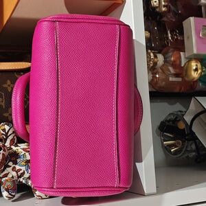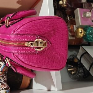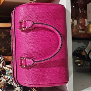 EUC, no crossbody strap included. There appears to be white paint on the bottom, must have picked up from the shelf. The last pic is a more accurate depiction of the color of the bag. Gold hardware
