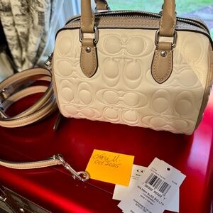 Mini Rowan in signature leather, chalk & taupe. Adjustable crossbody strap. Interior has 2 card slots. In great condition.