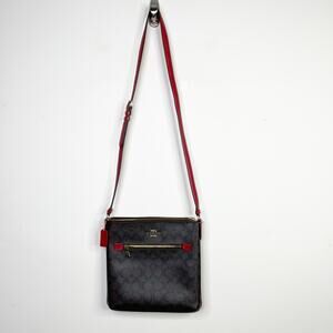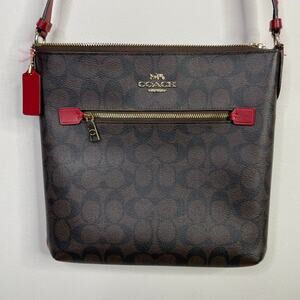 Coach Mini Rowan File Bag Signature Canvas Brown Red Crossbody Classic Purse