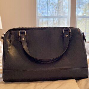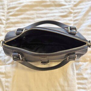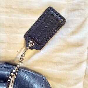 Coach Mini Satchel Crossbody Bag in Navy Blue. Leather. Silver hardware, front snap button pocket, inner zipped pocket and a patch pocket. Dual top handles with detachable shoulder strap. Compact and structured, perfect for everyday wear. EUC.
