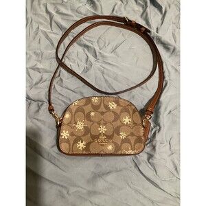 Coach Mini Serena Crossbody Tan in Signature Canvas Snowflake