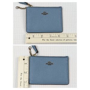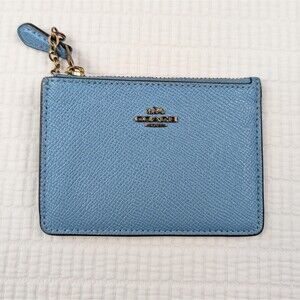 Coach Mini Skinny ID Card Case Crossgrain Leather Wallet Keychain Pacific Blue