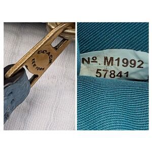 Coach Mini Skinny ID Card Case in crossgrain leather, style M1992 (57841). This compact and versatile piece is done in a pretty shade that I believe is called Pacific Blue. It features three card slots including one with a clear ID window, a zippered coin/secure compartment and an additional slip pocket.
