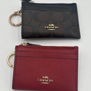 Coach Mini Skinny ID Case Wallet in Signature Coated Canvas Red OR Black/brown