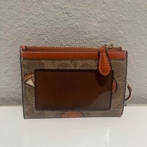 Like new condition. Two credit card slots. ID window Zip-top closure fabric lining Attached split key ring.
