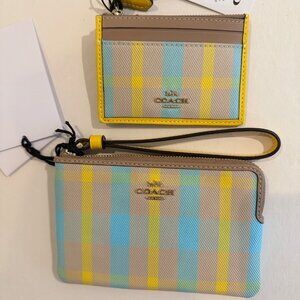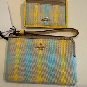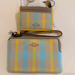 Coach Mini Skinny Id Case w wristlet/wallet /Plaid Print set/ yellow haze/ multi