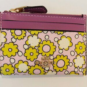 Coach Mini Skinny Id Case, wallet,key chain- Lilly Purple Pink yellow Floral