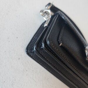 "LIKE NEW" THE CUTEST!! Black Pebbled Leather Mini Tabby Wallet By Coach. Flap Magnetic Snap Closure, Back Card Slot, Silver Tone Hardware, Interior has 3 Slots for Cash Or Credit Cards, Center Zip Coin, Under Flap Card Slot, Removable Wrist Strap, Bag/Wallet Measures approx. 3" T X 5" L X 2" D, Like New Condition, No Wearing, Never Used:) Rt.195.00 approx. * Note: Missing Crossbody Strap :( If You Have Another Coach Bag/Crossbody you Can Use it / Add it Like Shown in Last (stock photo).