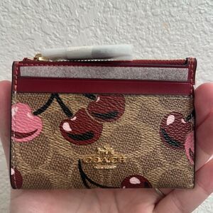 Coach Mini Skinny Id Case In Signature Canvas With Cherry Print