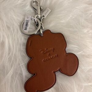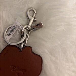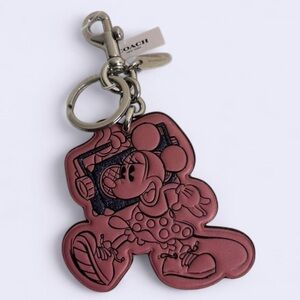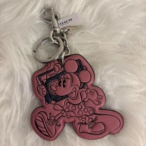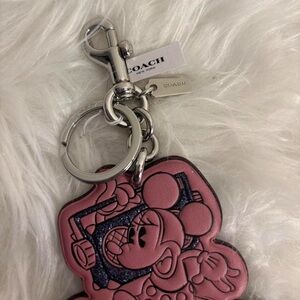 Charming pink keychain featuring Minnie Mouse. Includes a sturdy metal clasp and Coach branding.