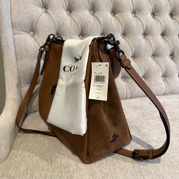 Keywords: Coach Shay, Coach mixed leather, Coach suede, Coach vintage khaki, Coach style 86809, Coach crossbody, Coach shoulder bag, Coach pebbled leather, Coach retail bag, designer bag, authentic Coach, women’s handbag, everyday leather bag, adjustable strap, detachable strap, zip top bag, luxury purse, neutral brown bag, classic Coach purse.