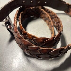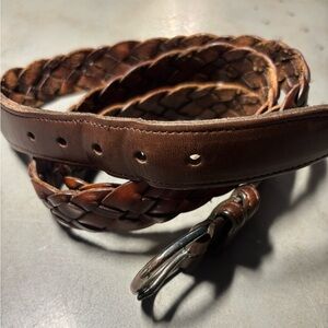 Coach Mocha Braided Leather Belt, Size 42, Brass Buckle