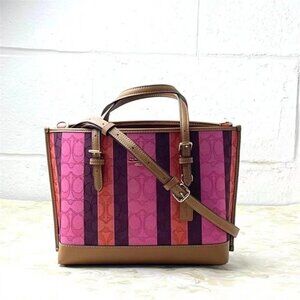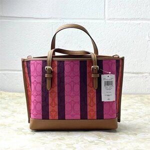 Coach Mollie 25 Tote in signature jacquard with stripes C4086 pink burgu…
