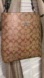 Stylish Coach shoulder bag with a tan and olive design. Perfect for versatile wear.