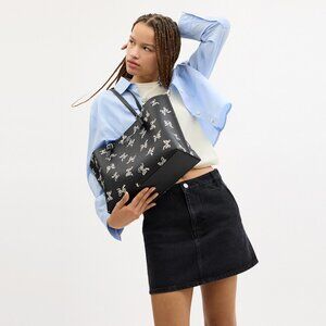 Printed coated canvas Inside multifunction pocket Zip-top closure fabric lining Side open compartments Handles with 10 1/4 drop 13 1/4 (L) x 11 (H) x 5 (W) Style No. CY647