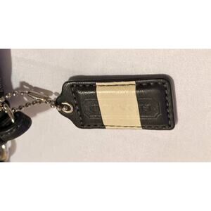 This is a Coach Monochrome Signature Wristlet Wallet in Black with White Accents. It measures 6" x 4" and is in excellent pre-owned condition. Please see pics for details.
