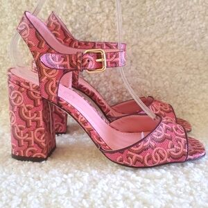 Coach Monogram Ankle Strap Block Heel Sandals. Size 7 B