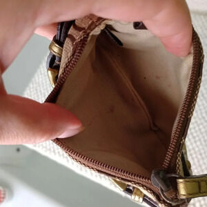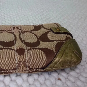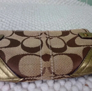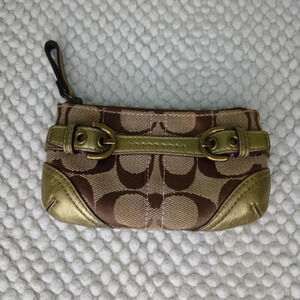 Coach Monogram Keychain Gold Leather & Side Buckle Coin Purse. Previously used condition.