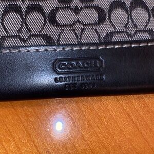Coach black & gray Canvas Monogram Wallet.