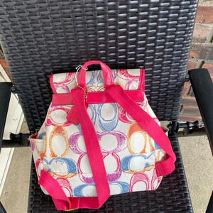 Coach Monogram Multicolor Canvas Leather Trim Scribble Poppy Backpack