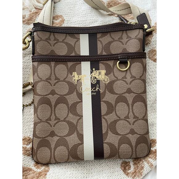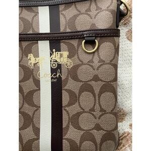 Coach Monogram Stripe Brown Crossbody Shoulder Bag Women's