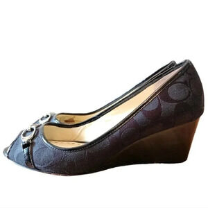 Coach Monogram Wedge Canvas Black Heel Shoes Size 8 Black.